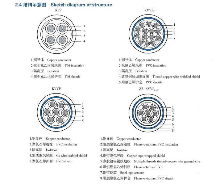 本公司在額定電壓450/750V聚氯乙烯絕緣和護(hù)套控制電纜的基礎(chǔ)上開發(fā)了0.6/1kv交聯(lián)聚乙烯絕緣控制電纜、阻燃型PVC/XLPE絕緣控制電纜和耐火型PVC/XLPE絕緣控制電纜。450/750V聚氯乙烯絕緣控制電纜符合GB9330-88的規(guī)定。0.6/1KV交聯(lián)聚乙烯絕緣控制電纜符合IEC60502.1的有關(guān)規(guī)定。阻燃型和耐火型控制電纜其電氣性能符合GB9330-88《塑料絕緣控制電纜》,阻燃性能根據(jù)要求可符合GB/T18380.3《成束電線或電纜的燃燒實(shí)驗(yàn)方法》中的A、B或C類,耐火性能符合BG/T19216-2003《在火焰條件下電纜或光纜的線路完整性試驗(yàn)》的規(guī)定。
