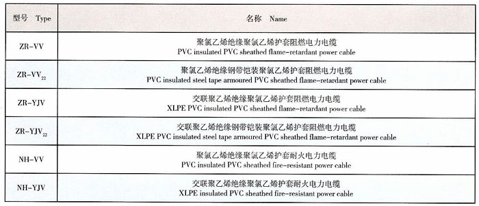 阻燃及耐火電力電纜結(jié)構(gòu)尺寸