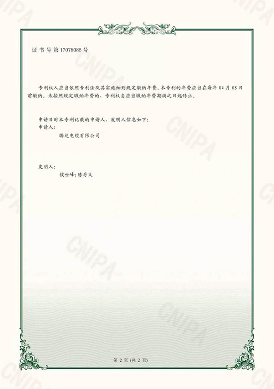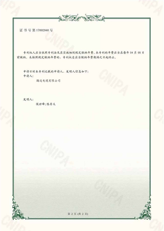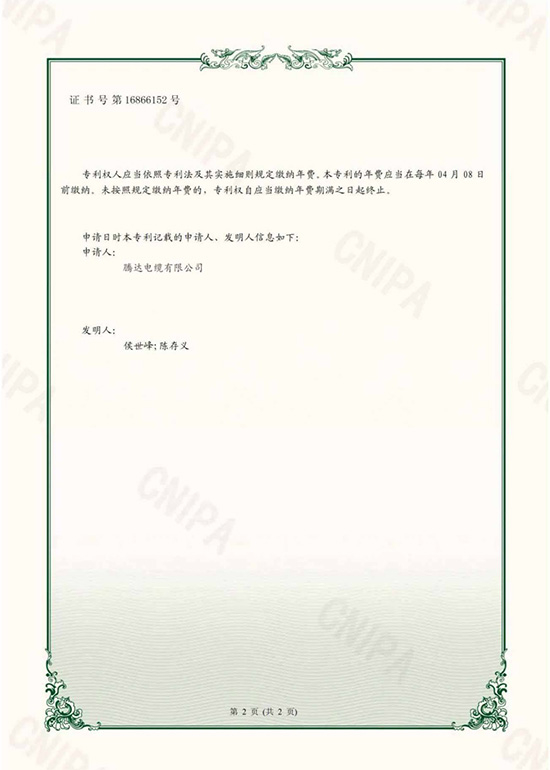 實(shí)用新型專利證書(shū)2第二頁(yè)